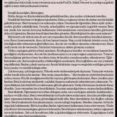 Artikel:”Plaats van discipline, flexibiliteit en liefde in de opvoeding van kinderen”. (Turks). In: Birlik. Turkstalige blad in Midden Brabant. September 2001.