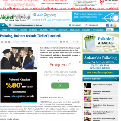Bericht i.v.m. mijn proefschrift: De psychische gezondheid en problemen van Turkse migranten. (Turks). Tiklabence.net. 23 november 2010.