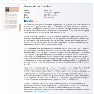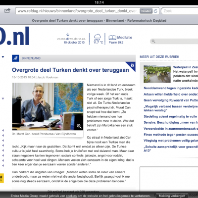 Interview: Murat Can over eenzame Turken. Profiel. Reformatorisch Dagblad. 12 oktober 2013.