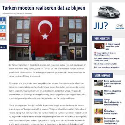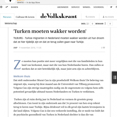 Interview: Hoe geïntegreerd zijn die 500.000 Turkse Nederlanders eigenlijk? Thuis is Turkije. De Telegraaf. 23 maart 2013. P. TA 1.