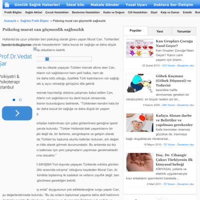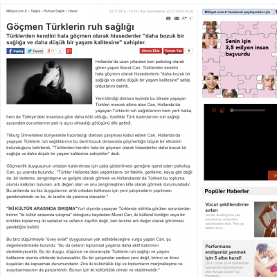 Bericht i.v.m. mijn proefschrift: De psychische gezondheid van Turkse migranten. (Turks). Aksaglik. 23 november 2010.