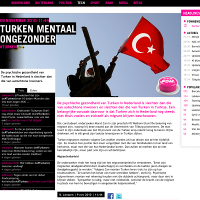 Bericht i.v.m. mijn proefschrift: De psychische gezondheid van Turken is slecht (Turks). Interajans. 23 november 2010.