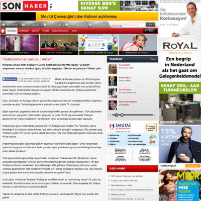 Bericht i.v.m. mijn proefschrift: De gezondheid van de Nederlandse Turken is zorgwekkend. (Turks). Sabah. 27 november 2010.