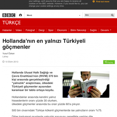 Interview: De eenzaamste Turkse migranten van Nederland. BBC- Turks. 10 oktober 2013.