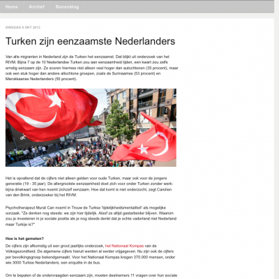 Interview: Niemand is eenzamer dan Nederlandse Turk. Trouw, de Verdieping. 8 oktober 2013.