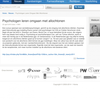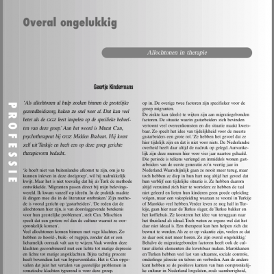 Artikel: ‘Overal ongelukkig” allochtonen in therapie. In: De Psycholoog. December 2000.