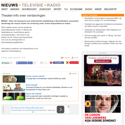 Omroep Brabant, over onze symposium op 18 Mei 2000 en onderwerp ‘Psychische klachten bij allochtonen’ 15 Mei 2000.