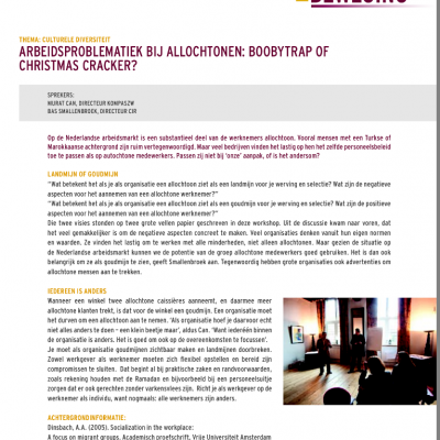 Artikel: Arbeidsproblematiek bij allochtonen: Boobytrap of Christmas cracker? In: Congres verslag Gezondheidsmanagement Bedrijf in Beweging, gezondheidsmanagement- diversiteit- economische situatie. Inzichten vanuit praktijk, wetenschap en beleid. 12 maart 2009. Amersfoort.