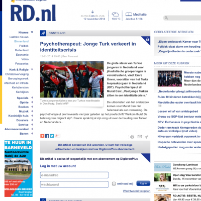 Commentaar: psychotherapeut: Jonge Turk verkeert in identiteitscrisis. Reformische dagblad. 12 november 2014.