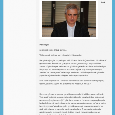 Observatie: vakantie psychologie (Turks): Dogus krant. nr: 192. juni 2014.