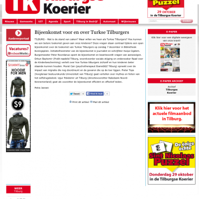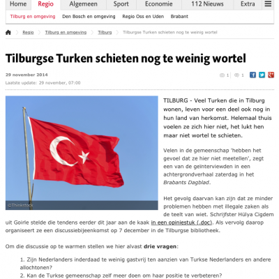 Interview: Turkse Tilburgers schieten nog te weinig wortel. Brabants Dagblad. Verdieping. zaterdag 29 november 2014.p.38-39.