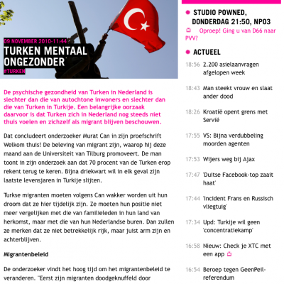 Interview: Naar aanleiding van het manifest in de Volkskrant over Turkse jongeren die zich in Nederland niet thuis voelen. NOS- journaal. Nederland 3. 10 januari 2011.